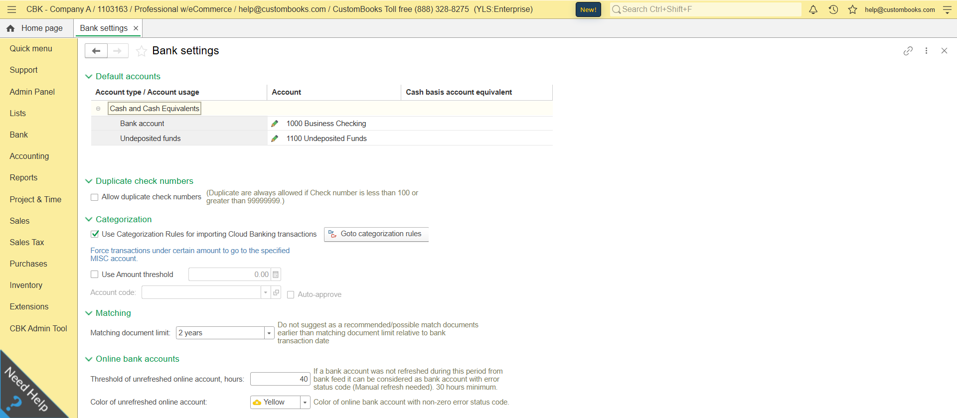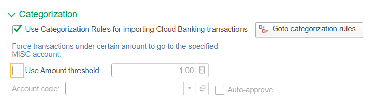 This section controls how CustomBooks™ automatically processes imported cloud banking transactions.