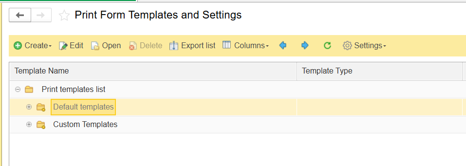 - Export list: Export the list of templates to PDF, Excel, or Word.