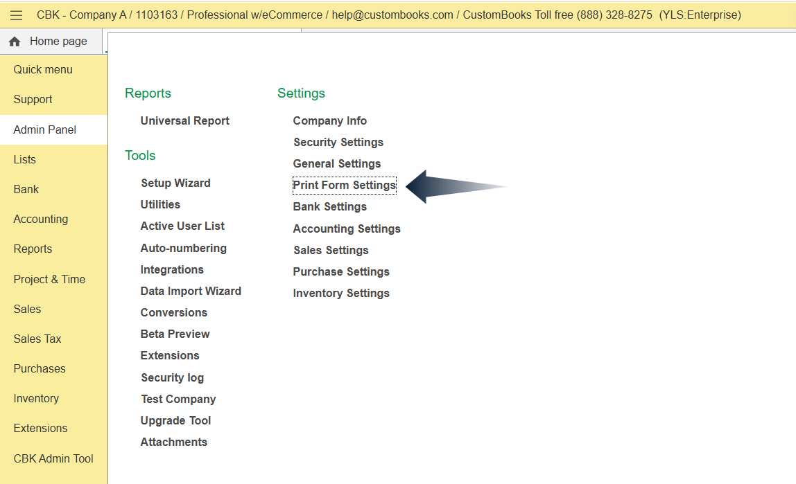 The Print Form Templates and Settings in the Admin Panel allows you to manage and customize the layouts used for printing your business documents (e.g., sales invoices, purchase orders, customer statements, etc.).