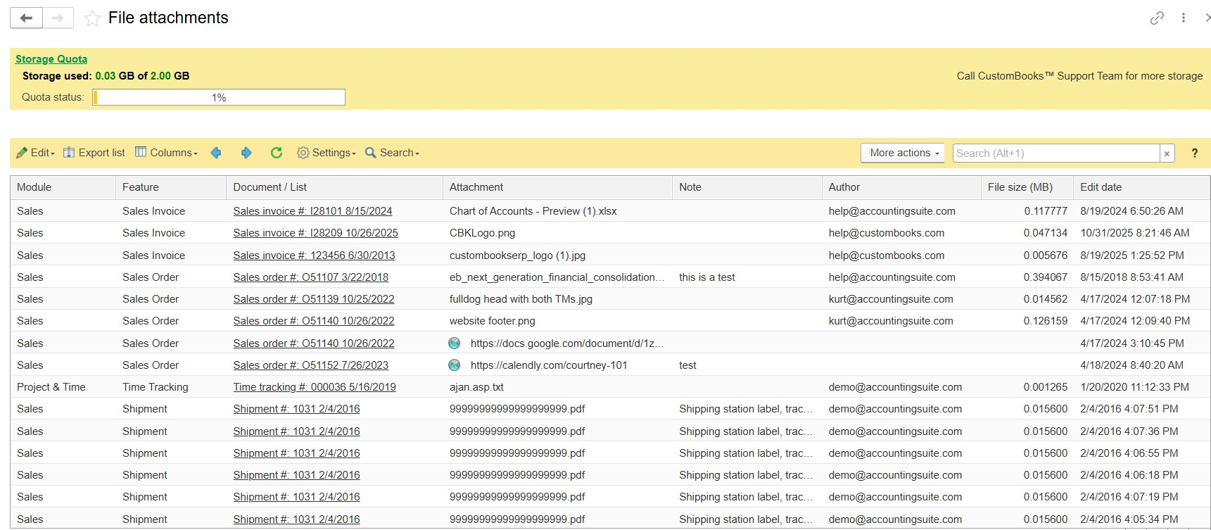 - Export list - Export the attachments list for reporting or auditing purposes.