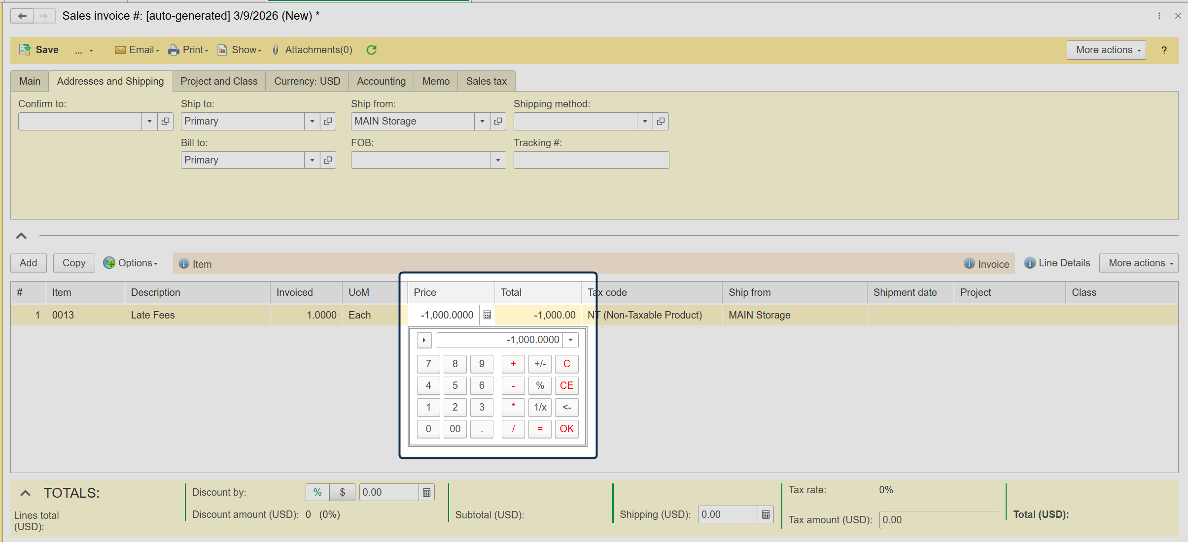 - Once these settings are active, you will be able to enter negative values in the Price or Total columns on Sales Orders and Invoices.