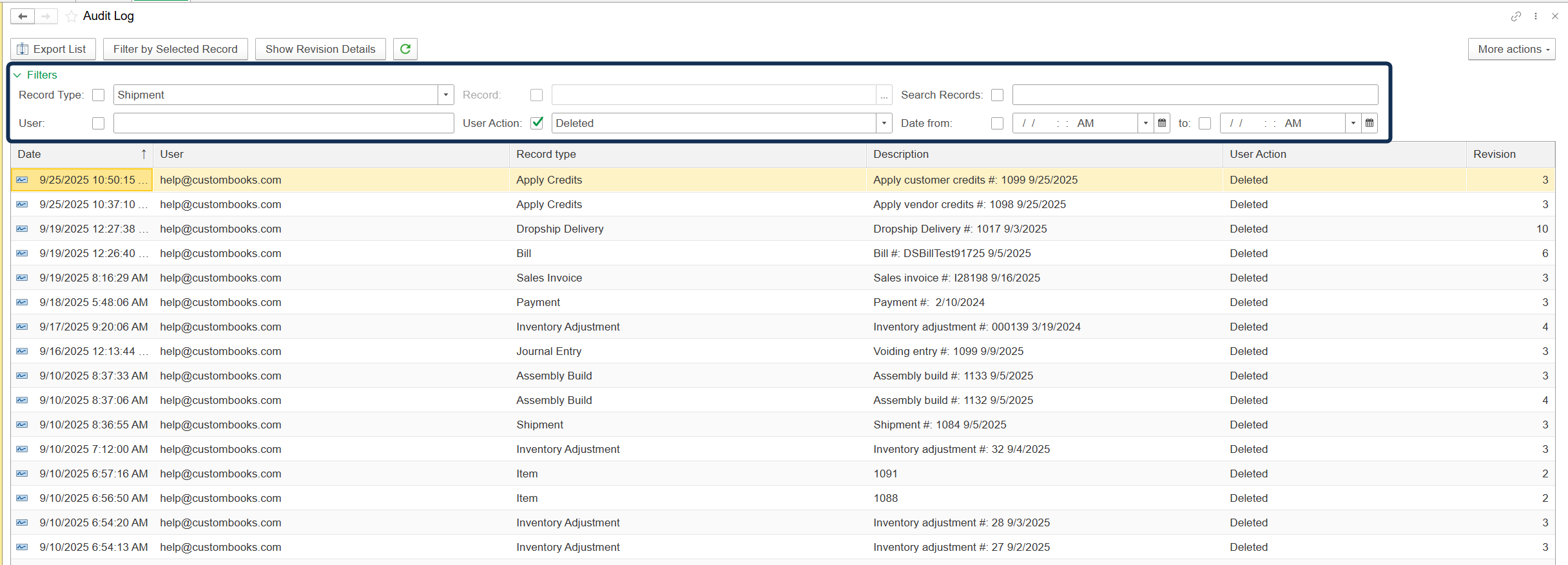 To access the Audit Log, navigate to Accounting > Audit Log.