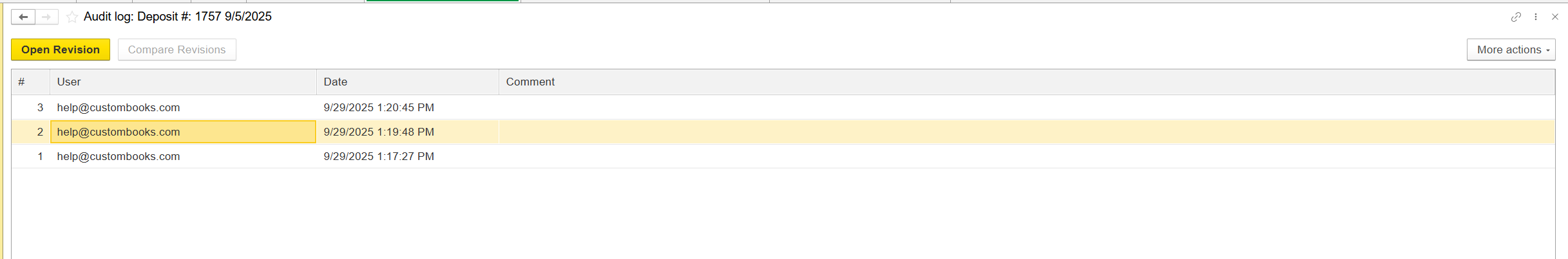 - Select Audit Log. The Audit Log will open, showing a list of versions.
