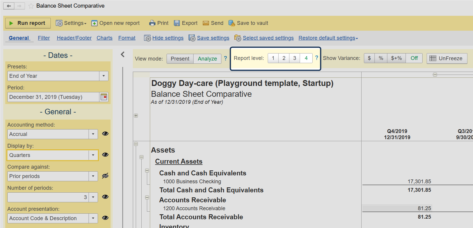 The Balance Sheet Reports offers two primary modes tailored for different needs: