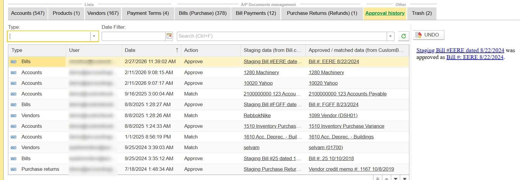 - Approval History - This tab provides a complete log of all approved records.