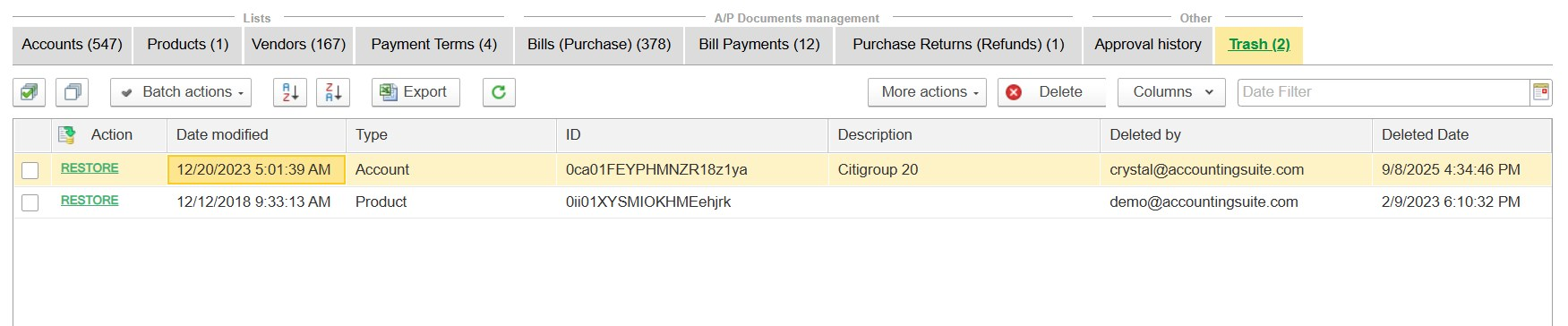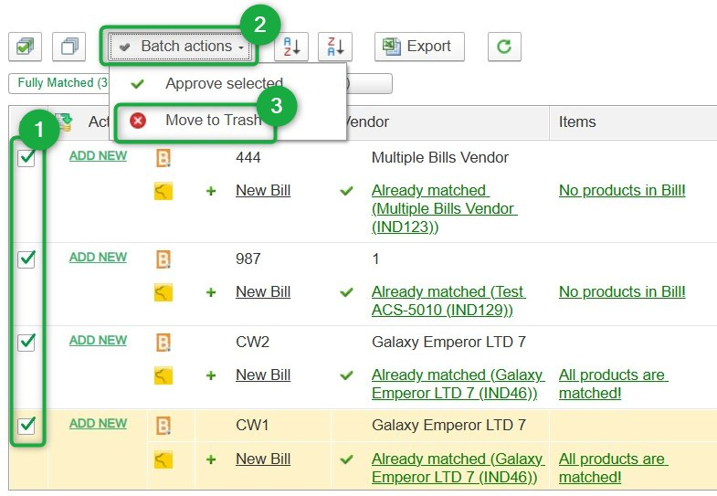- Or use Batch Actions → Move to Trash to move multiple records to Trash at once.