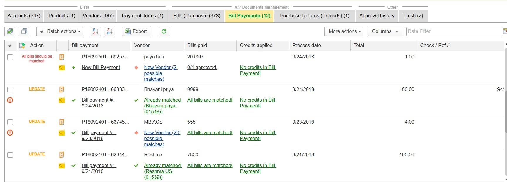 - Approve (UPDATE) once fully matched.