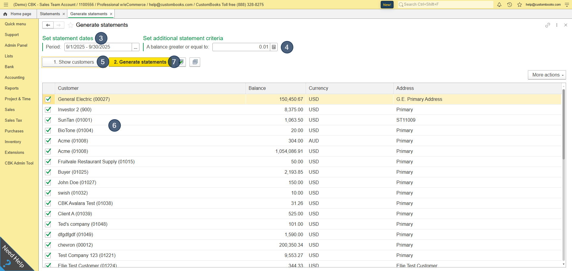 - After setting up the Statement dates and balance threshold, click the Show Customer button.