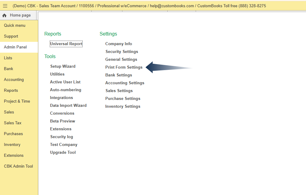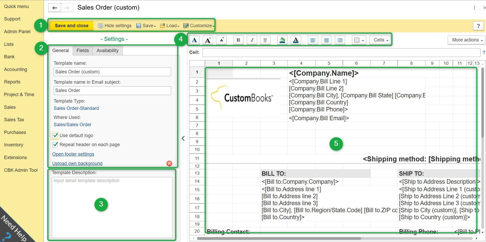 Print Form Templates in CustomBooks™ are pre‑designed layouts used to generate standardized printed documents such as invoices, receipts, sales orders, quotes, and other business forms. These templates ensure key information is presented in a professional, organized, and consistent format across all your printed output.
