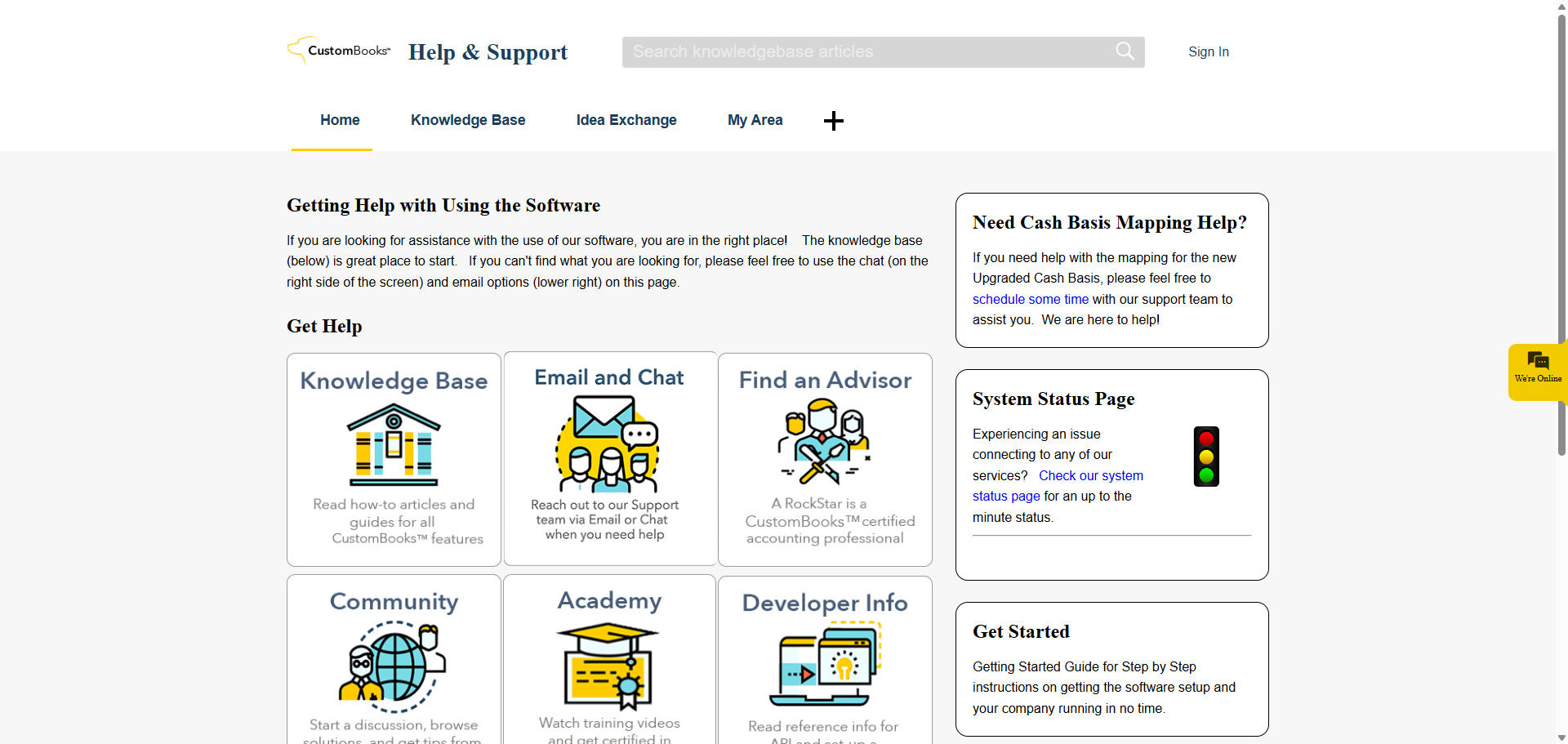 - Live Chat - CustomBooks™ also offers online chat support services. Live chat allows you to communicate directly with a support representative in real time. Use this option for quick queries, minor issues, or clarifications. It’s convenient and efficient. To chat, click the "We're Online CHAT NOW!" button (bottom-left corner) from the CustomBooks™ home web page or from the Help and Support Portal.