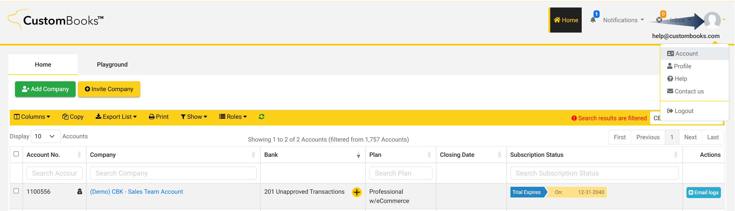 Overview The CustomBooks™ Portal is the initial screen you see after logging in, serving as the central hub for managing accounts, accessing financial details, and performing various administrative tasks. In the CustomBooks™ Portal, you will find the ...