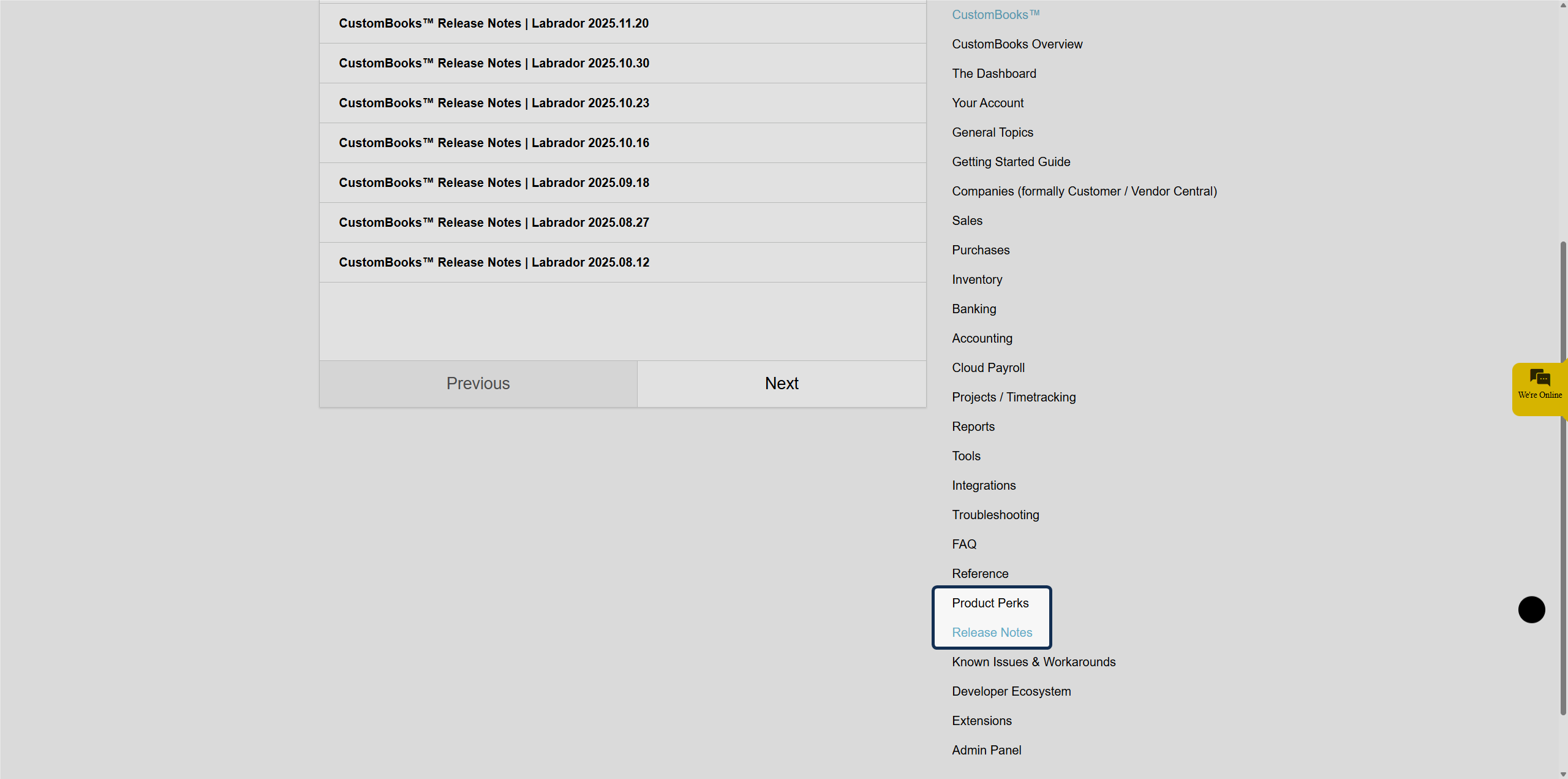 Stay up-to-date with the latest enhancements, new features, and important updates in CustomBooks™! We've made it easy to access both our detailed Release Notes and our quick-highlight Product Perks directly from within the application.
