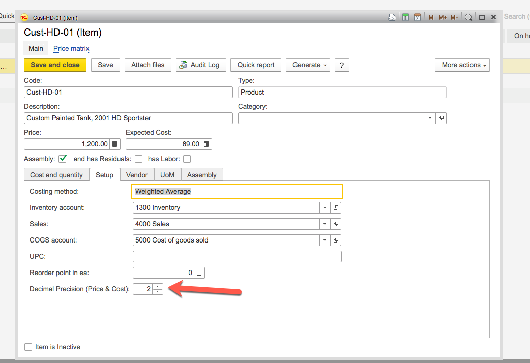 2) On the items for which you need to have more than 2 decimals, open the Item detail card and click the Setup tab. Increase the decimal setting to 3 or 4.