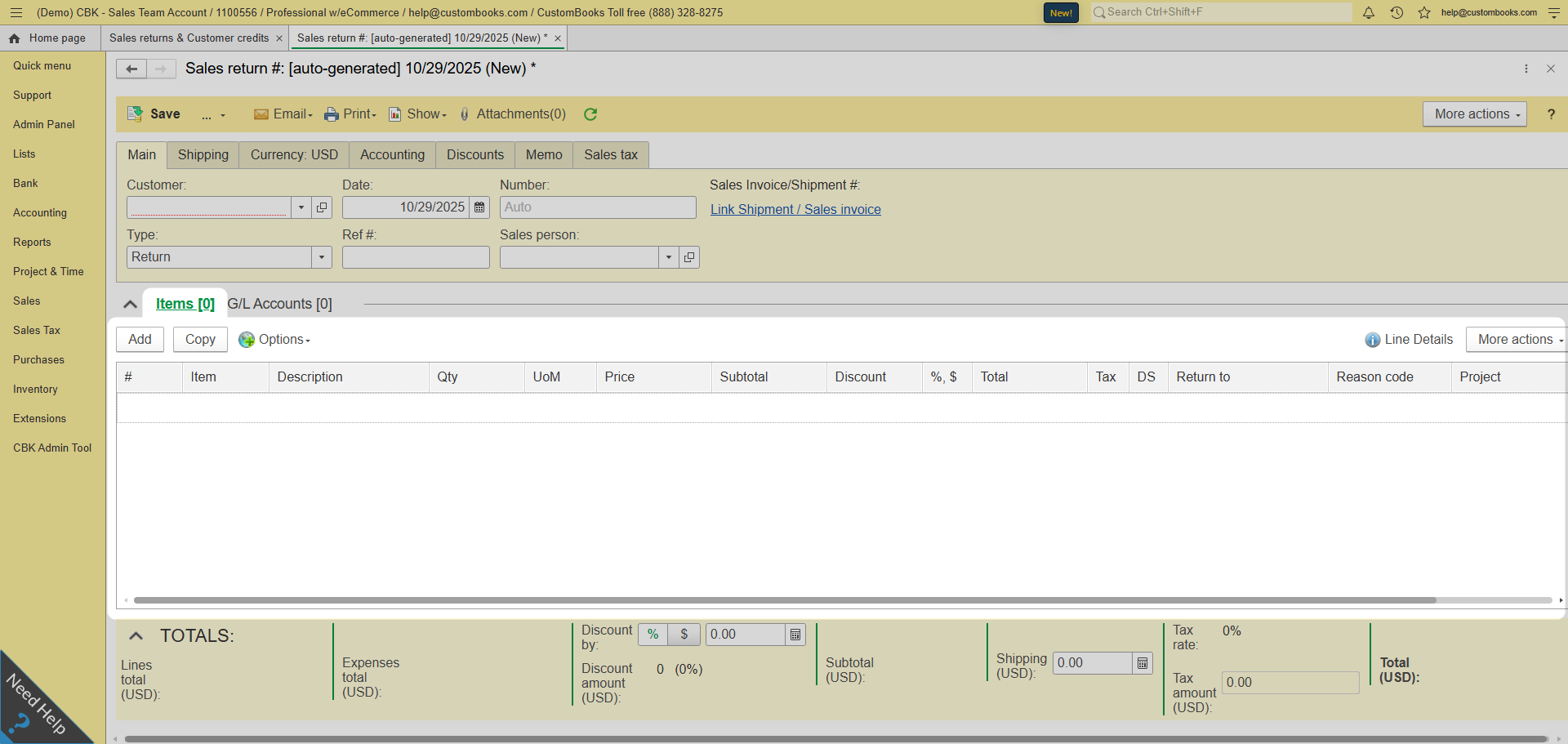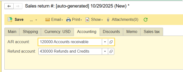 Adding GL accounts allows for direct allocation of the debit to specific expense, liability, or revenue accounts. This ensures that the sales return aligns with your chart of accounts and maintains accurate financial reporting.