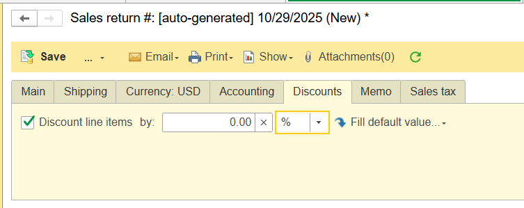 Discounts Tab:
