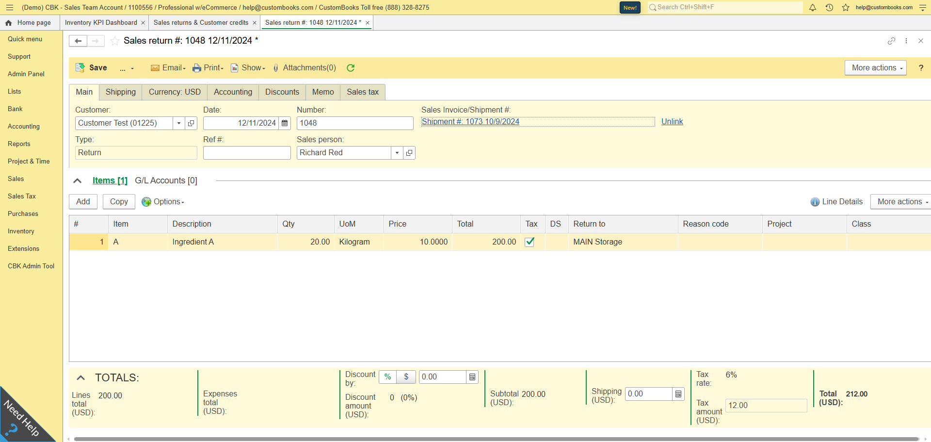 - Edit the Sales Return.