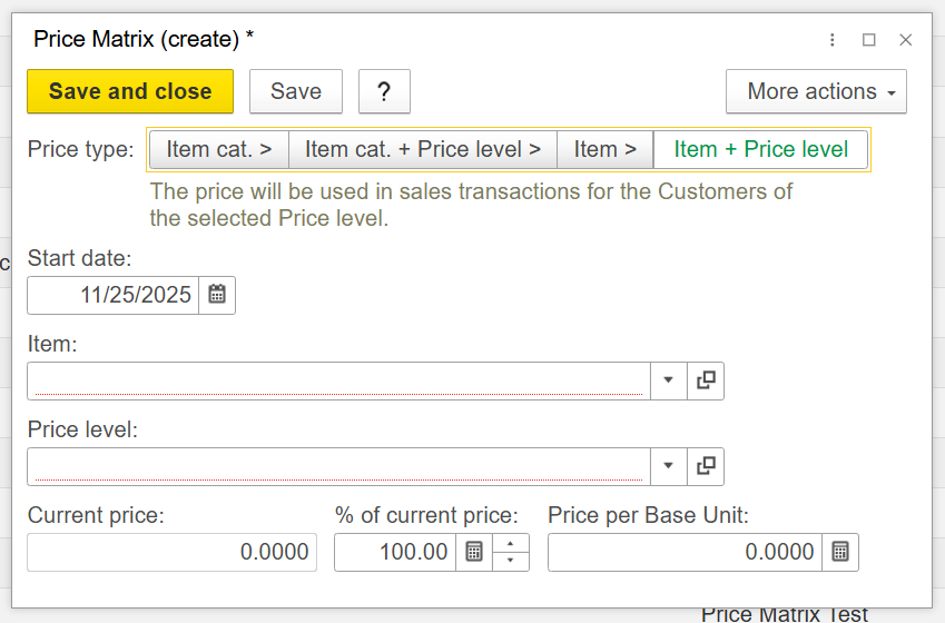 - Navigate to Sales > (Tools) Price Matrix > Create.