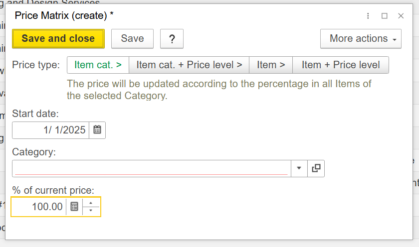 Combining Item Category, Price Level and Dates with the Price Matrix